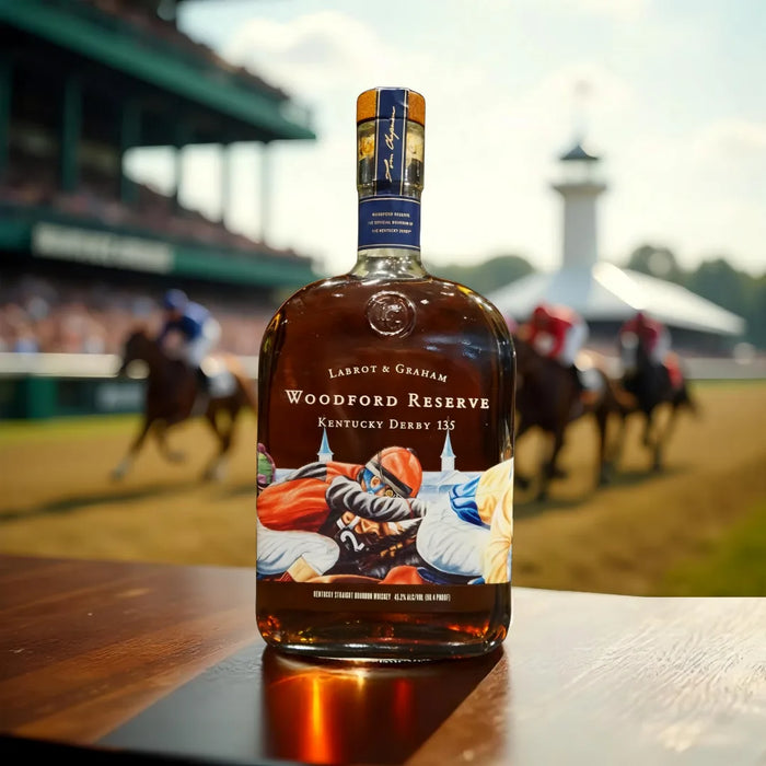 Commemorate a racing tradition with the 2009 Woodford Reserve Kentucky Derby 135 Edition Straight Bourbon Whiskey. This special release honors the 135th running of the Kentucky Derby, featuring a rich blend of flavors including notes of caramel, vanilla, and toasted oak, all culminating in a smooth, luxurious finish. Crafted with meticulous attention to detail, this bourbon is a collector's delight and a testament to Woodford Reserve's legacy of excellence. Elevate your collection with this rare and distinguished bourbon, available exclusively at Cana Wine Co.